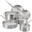 Push culinary boundaries with cookware innovation by equipping the kitchen with a Hestan ProBond Stainless Steel 10-Piece Cookware Set. ProBond Professional Clad Stainless Steel is handcrafted in Italy using a tri-ply body and responsive pure aluminum core for optimum performance, maximum durability, and fast, even heat distribution. Skillets feature unique curved sidewalls, which allow for 20% greater cooking surface when crafting palate evoking meals. Interchangeable lids fit all pots and pans in the set and rest snug on rims to lock in vital heat for maximum flavor. Ergonomic handles are secured with flush rivets to provide a firm, comfortable hold when cooking or serving. This durable cookware set is dishwasher safe for a quick cleanup and oven/broiler safe to 600°F for stove to oven cooking.