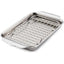 Introduce exceptional craftsmanship and lasting performance to the kitchen with the Hestan Provisions OvenBond Stainless Steel Eighth Sheet Pan and Rack Set. The eighth sheet pan is crafted from triple-bonded clad stainless steel with a responsive aluminum core designed to emit heat evenly, producing beautifully browned goods and perfectly roasted foods, while the roasting and cooling rack is crafted from stainless steel. When used with the sheet pan, the rack boosts air circulation around foods for even heat and beautifully browned, perfectly roasted results. Plus, the rack can be used on its own to cool down cookies, thin crust pizzas, and other baked or roasted foods. Warp-resistant clad pan features wide curved handles, providing an easily accessible, firm hold when removing from the oven, even when wearing oven mitts. Brushed stainless steel interiors and polished exteriors give these pans a lasting aesthetic that keeps them looking newer, longer, as does the dishwasher safe capability. This gourmet sheet pan and rack set is broiler safe and oven safe to 600°F to accommodate a wide range of recipes. See less