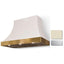 La Cornue Cornufé Cascade 36-inch hood is equipped with a powerful 600 CFM fan for excellent extraction of cooking vapors and odors. (The image is shown with a white finish and polished brass trim)